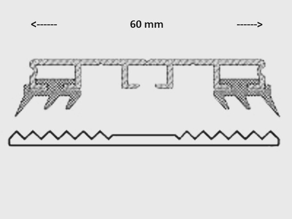Einteiliges Profil-Oberteil aus Aluminium und 2 eingezogenen Dichtlippen und Auflagegummi